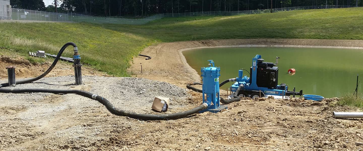 Our dry prime pumps were used to fill the fire suppression system with water from a 1.5 million gallon lake. We also supplied a 6 bag filter rental to prevent any silt from entering and clogging the system. After the system was tested and proved functional, the rental pump and filters stayed on the job to enable hot work, such as welding, to occur with an emergency plan in place if a fire breaks out. The reliability of E-Pump’s equipment played a significant role in bringing safety and security to this workplace.